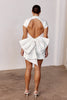 - Open back with draped bow detail