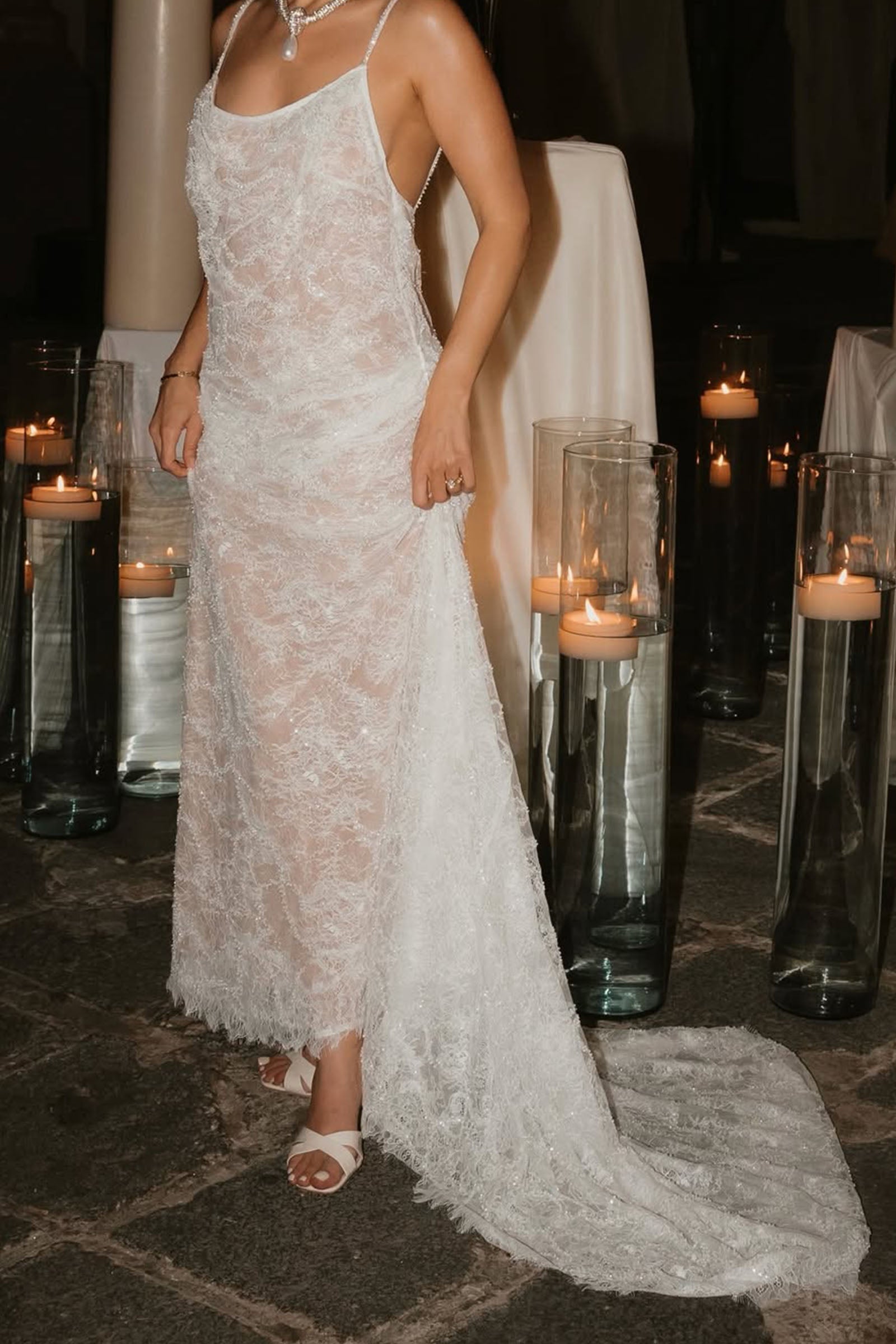 - Slip silhouette with 40cm train for graceful movement