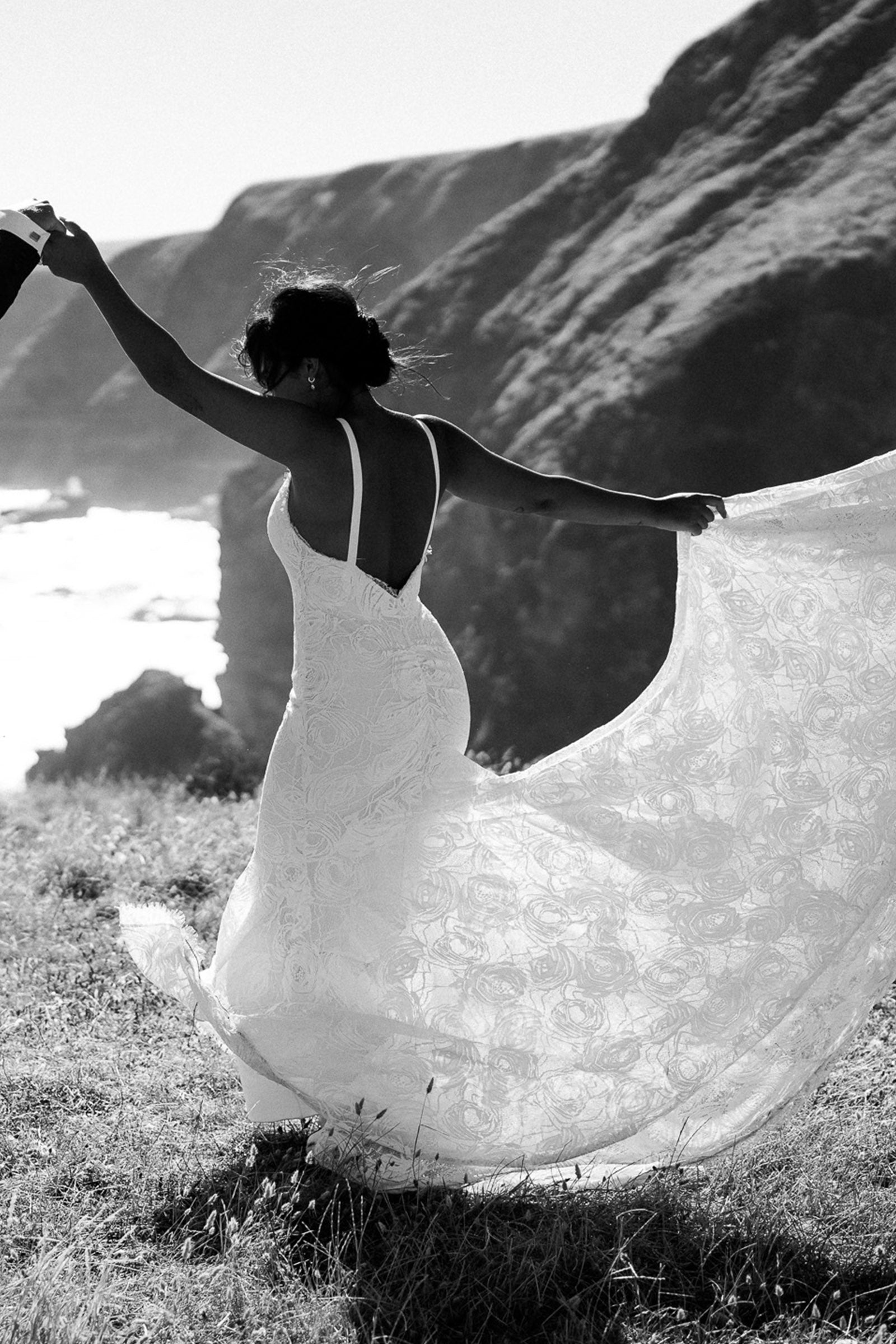 I loved feeling free and flowy. I didn’t want to feel constricted or heavy in a wedding gown and my dress made me feel so comfortable. The delicate detail in the lace of the gown was beautiful and I love that it was made to fit my body and I didn’t have to stress about gaining or losing weight before my wedding and needing last minute alterations.
