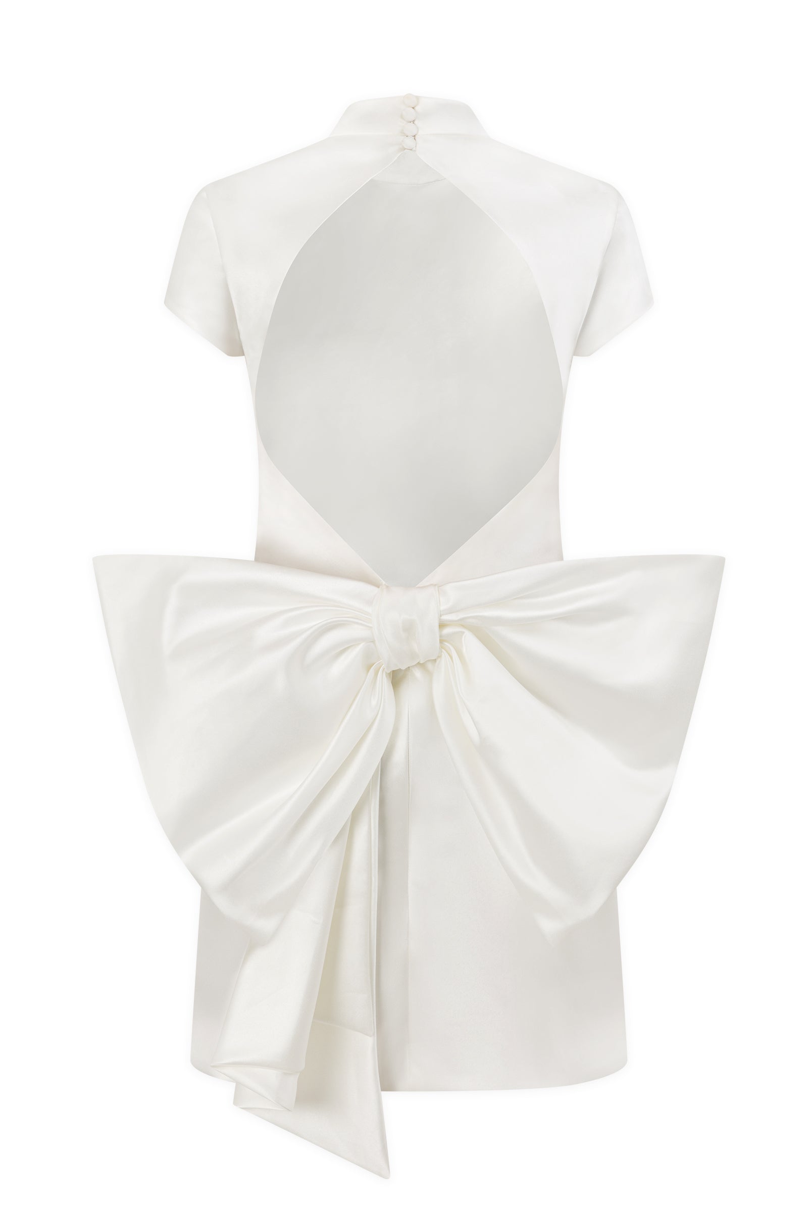 - Open back with draped bow detail